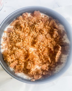 The crust is first baked in a springform pan. The springform pan is also what allows this cake to hold its shape as you're adding all the layers of banana-flavored deliciousness. This set is my favorite!